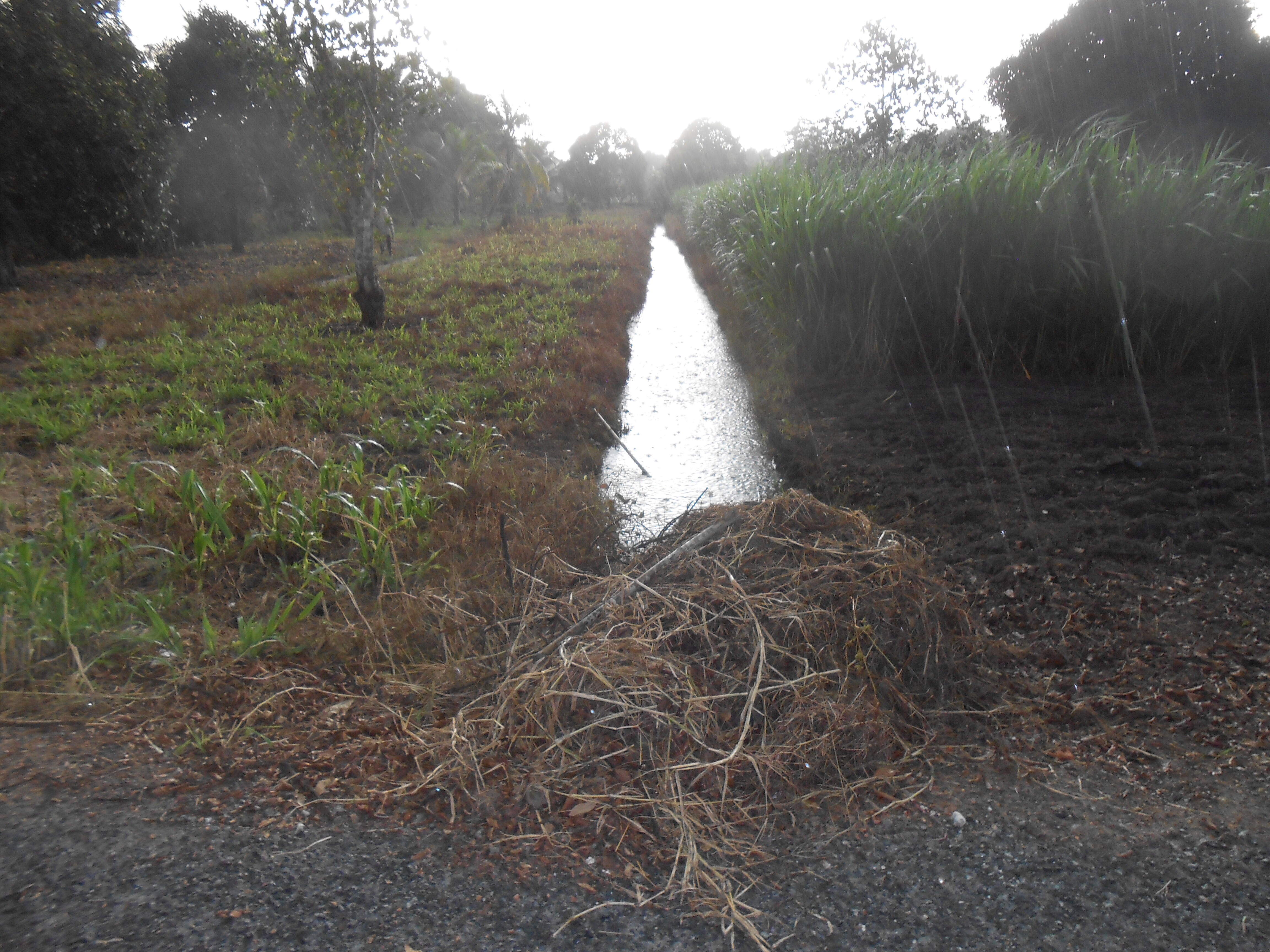 After playing some games we — Joe and me and 4 or 5 students, including Nigha, Thi, and Vy and Anh, all students we have spent some time with – walked down the road outside to see what the surroundings were like. Trees, ditches, houses behind the trees. The community center is in the back right of this photo.