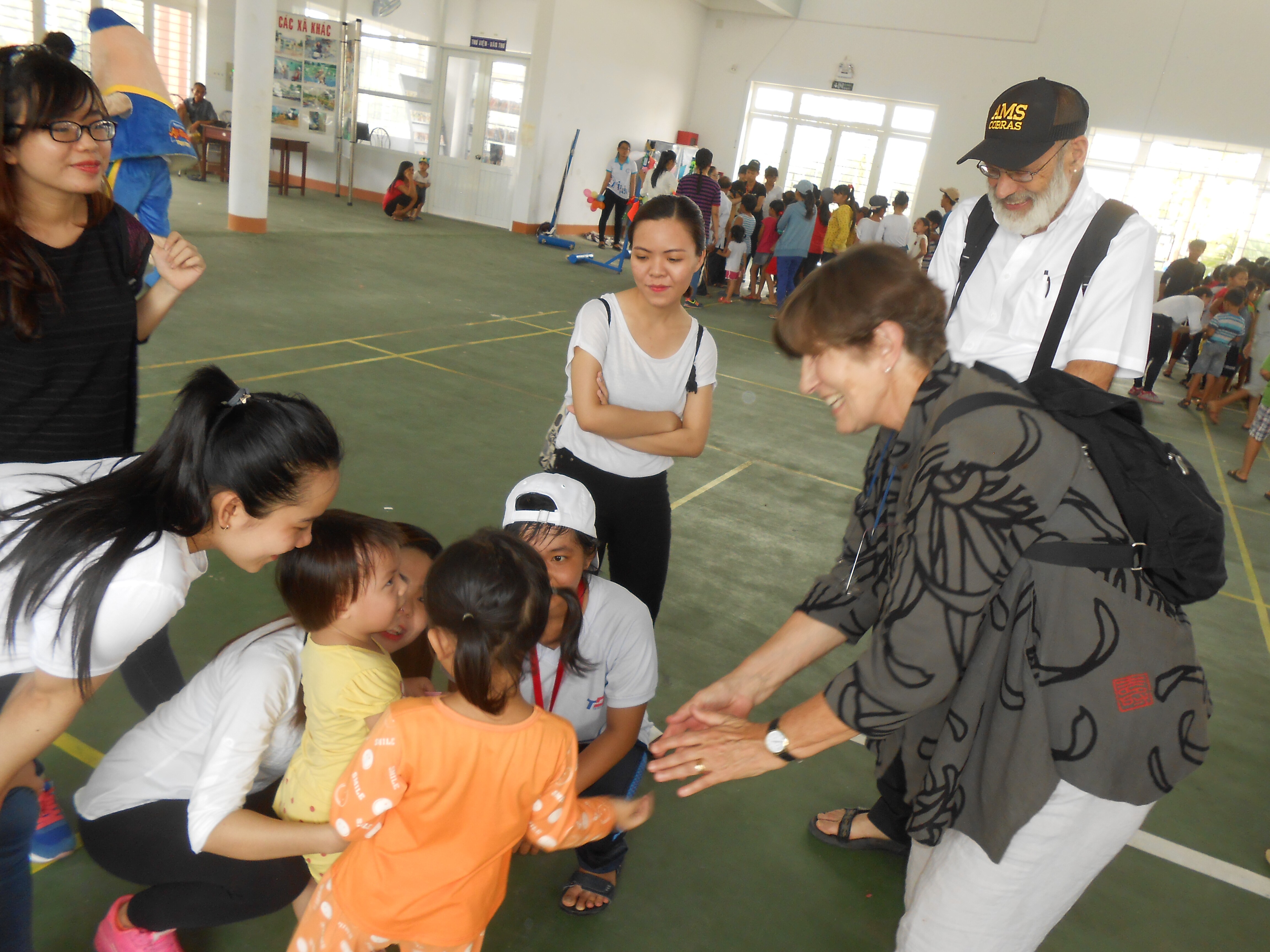 The noise in the room was deafening: the hundred children running around, laughing and clapping and playing, plus the music and the announcements from the microphone.