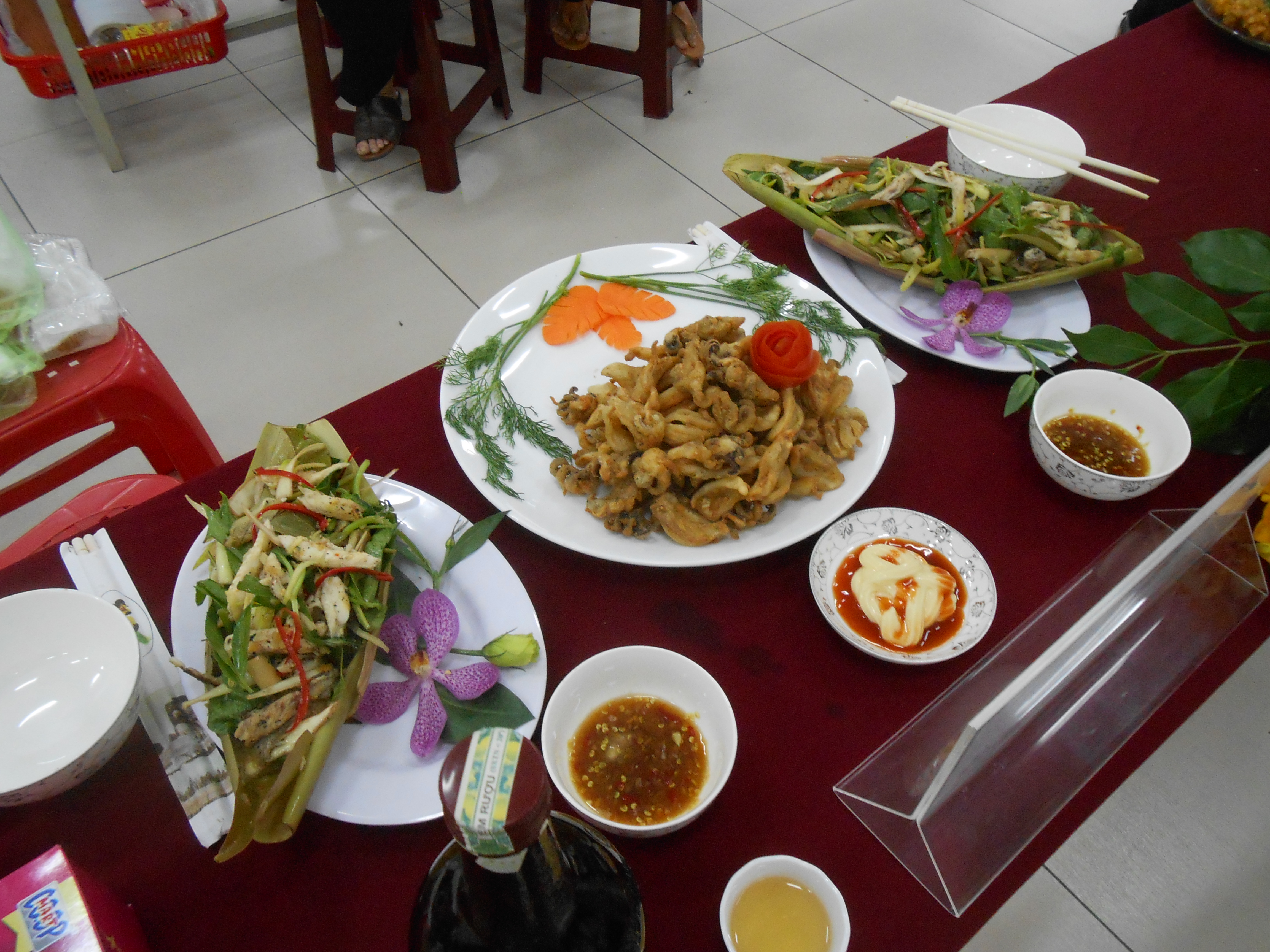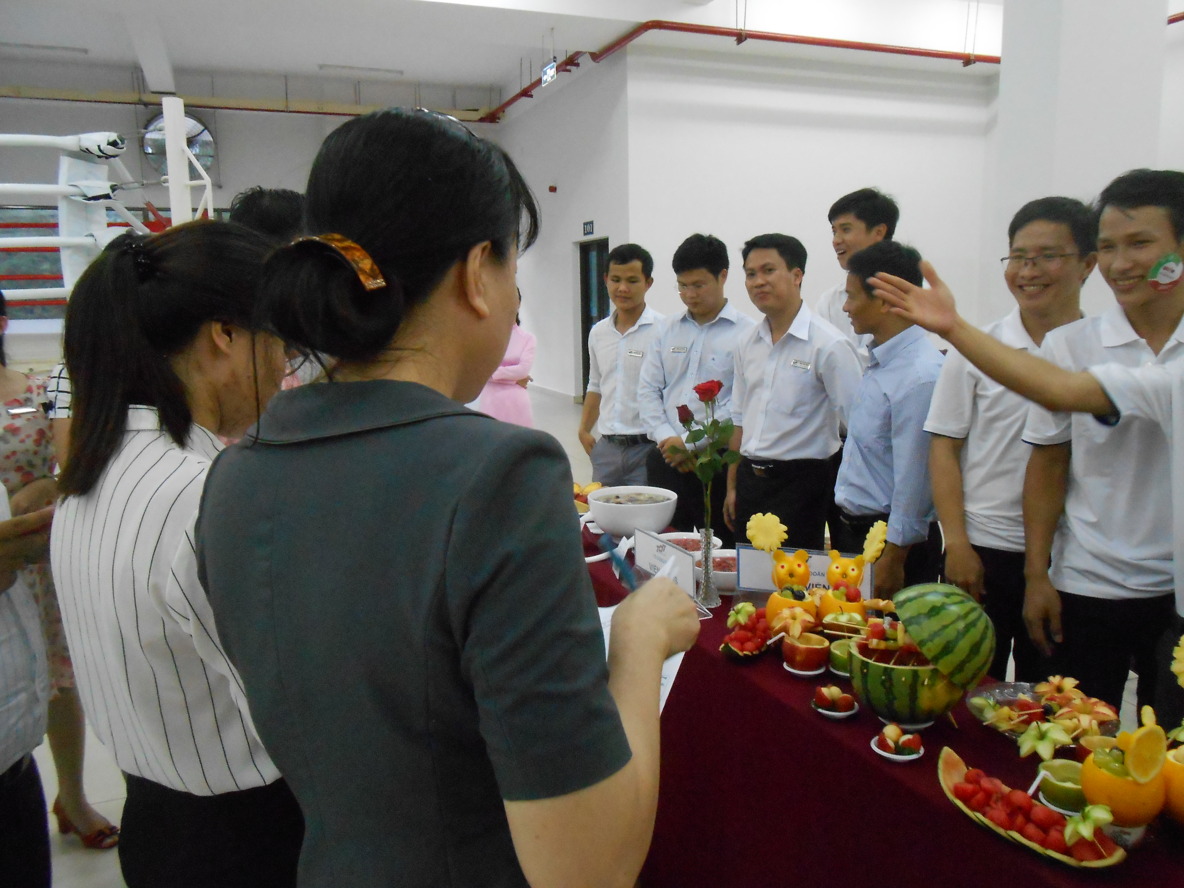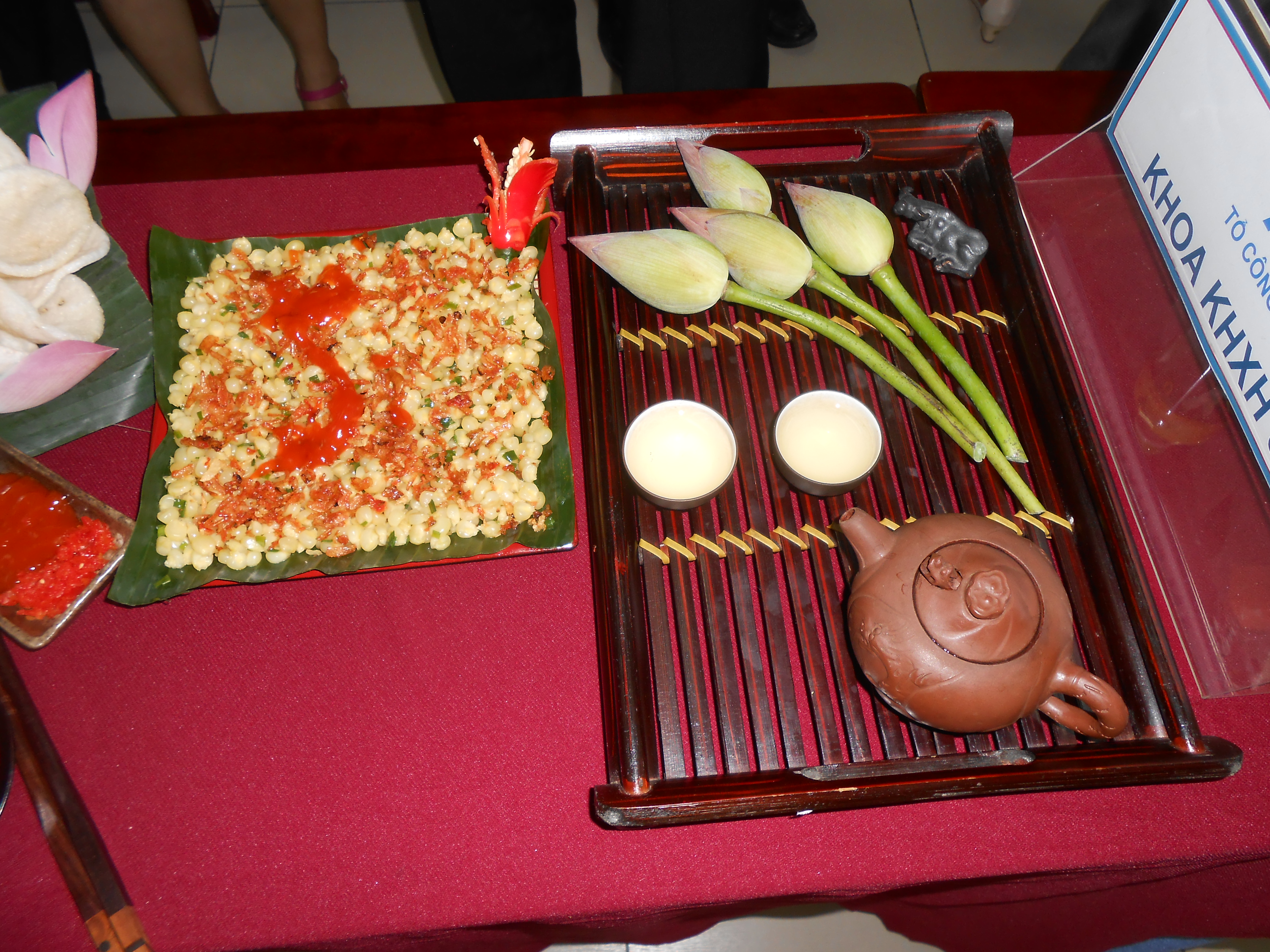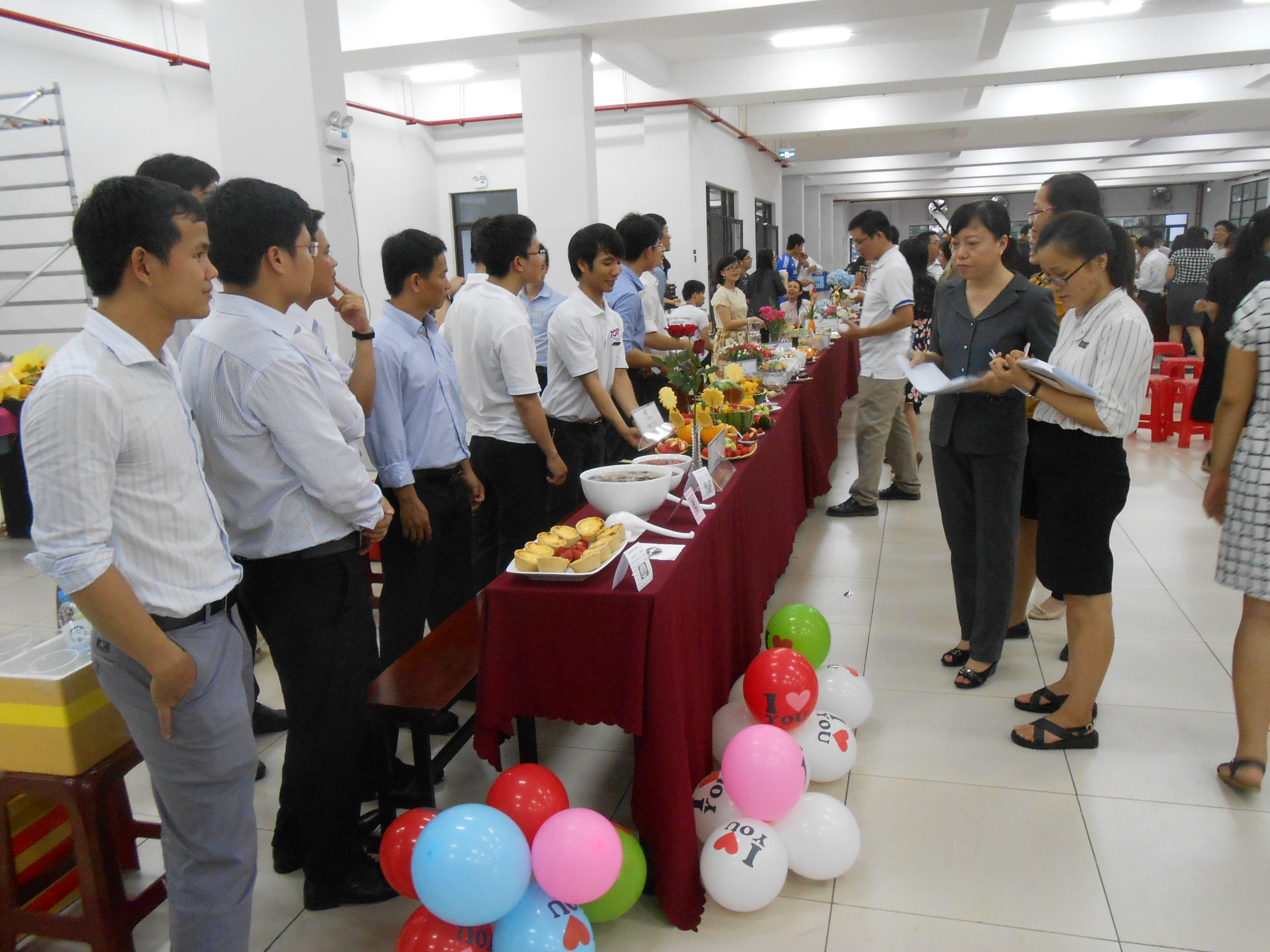 Today, October 16, is Women’s Day celebrated by the TDTU union. The way they celebrate it is with a food contest. Every department competes by bringing food. You cook it at home and bring it in with your serving dishes and take it to the gym, where tables are set up in a U-shape. Then three people, of whom only one can be a woman, prepares your department’s food for presentation. This is men doing women’s work. An outside famous chef and two other people serve as the judges.