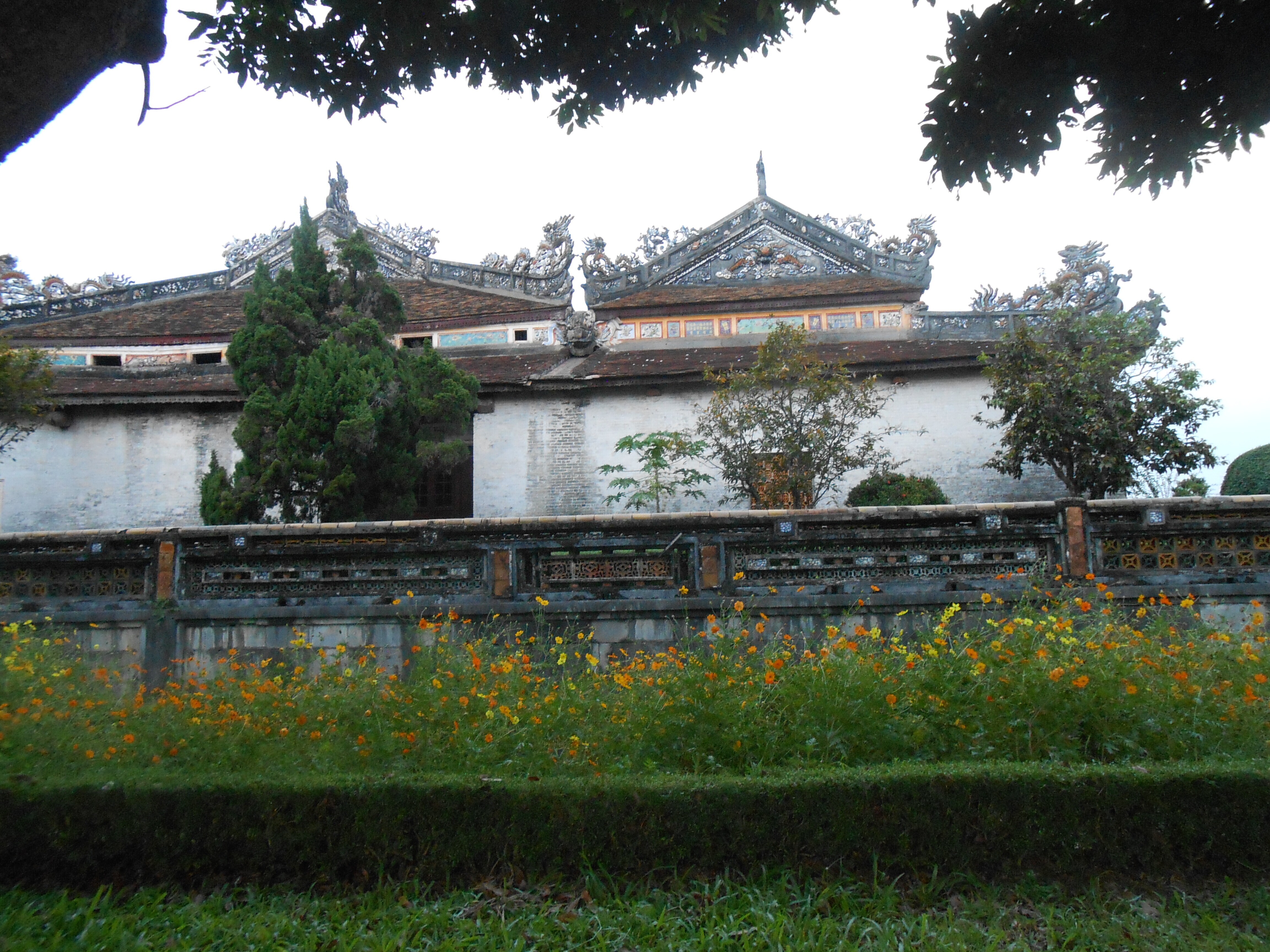 By the time of the American war, the inside of the Citadel was full of the houses of ordinary people. Only a small proportion of the population lived in the other side of the river. So much of the fighting happened in the Citadel. This was at Tet, 1968. Viet Cong came into the city dressed as peasants and ordinary people and brought arms on covered wagons that looked as if they were going to the market. When the uprising started, they were in place. People talk about the Tet massacre, and it looks from what I can see on the internet that were were about 2,500 – 3,000 people killed on both sides. Many in mass graves. Many of the buildings we saw — more than half — were war-damaged. The ones that had been renovated were amazing.