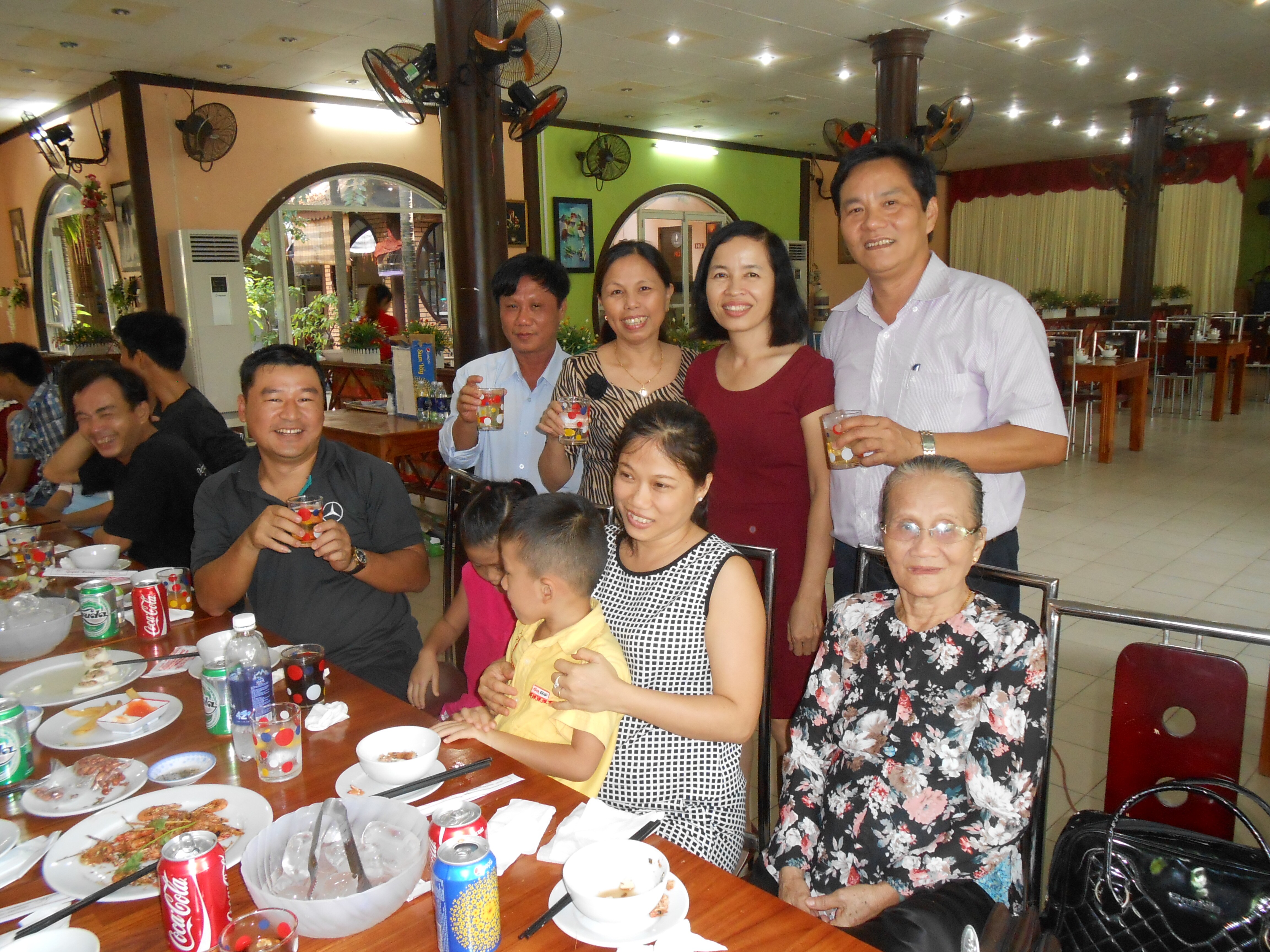 I did not take photos of everything. Other people were on the job. Here are a few of mine. These are from the family lunch, at a restaurant overlooking the Perfume River. The little woman on the right is the grandmother of Vinh’s husband. When all the family was assembled, there were at least five grandmothers with similar hairdos, nice jewelry and very attractive garments including ao dais. This grandmother is in her 80s, likes to travel, travels alone around Southeast Asia going to pagodas while her husband, who doesn’t like to travel, stays home. She seems to be in perfect shape and is fearless.