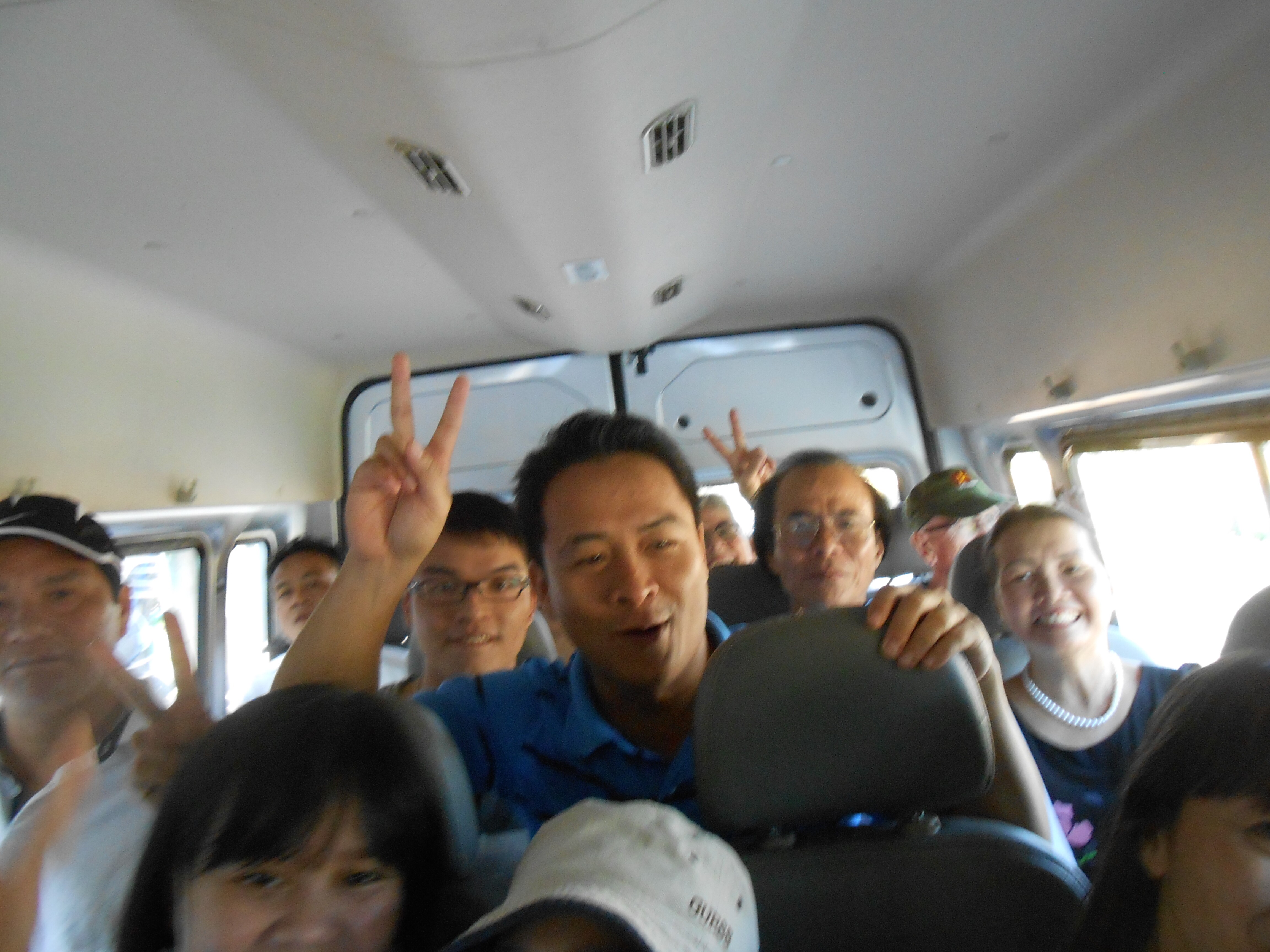 Many hours during the three days surrounding the wedding were spent in a van going around to see sights, No one uses seat belts, and the number of people who can fit in the van depends on the side of the people, which gives you an idea. You can barely see Joe in the left rear.